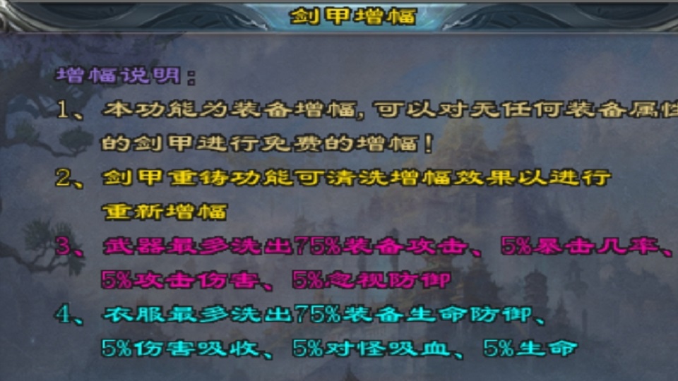 4)项链最高强化到+50,幸运+20可以刀刀最大攻击+20以上每1点幸运增加人物1%神力倍功。